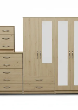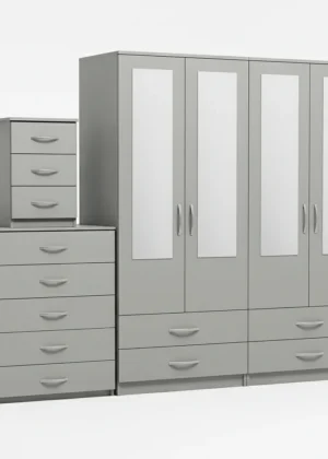 4-HALF MIRROR 4 DOOR WARDROBE SET (Assembled)