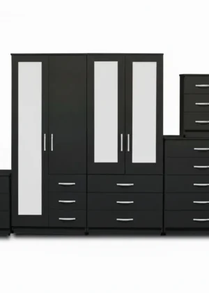 4-FULL MIRROR 4 DOOR WARDROBE SET (Assembled)